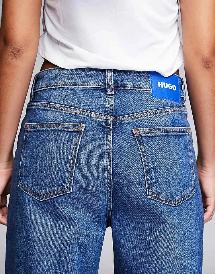 HUGO Blue Gisata Wide Leg Jeans In Vintage Wash For Women Navy