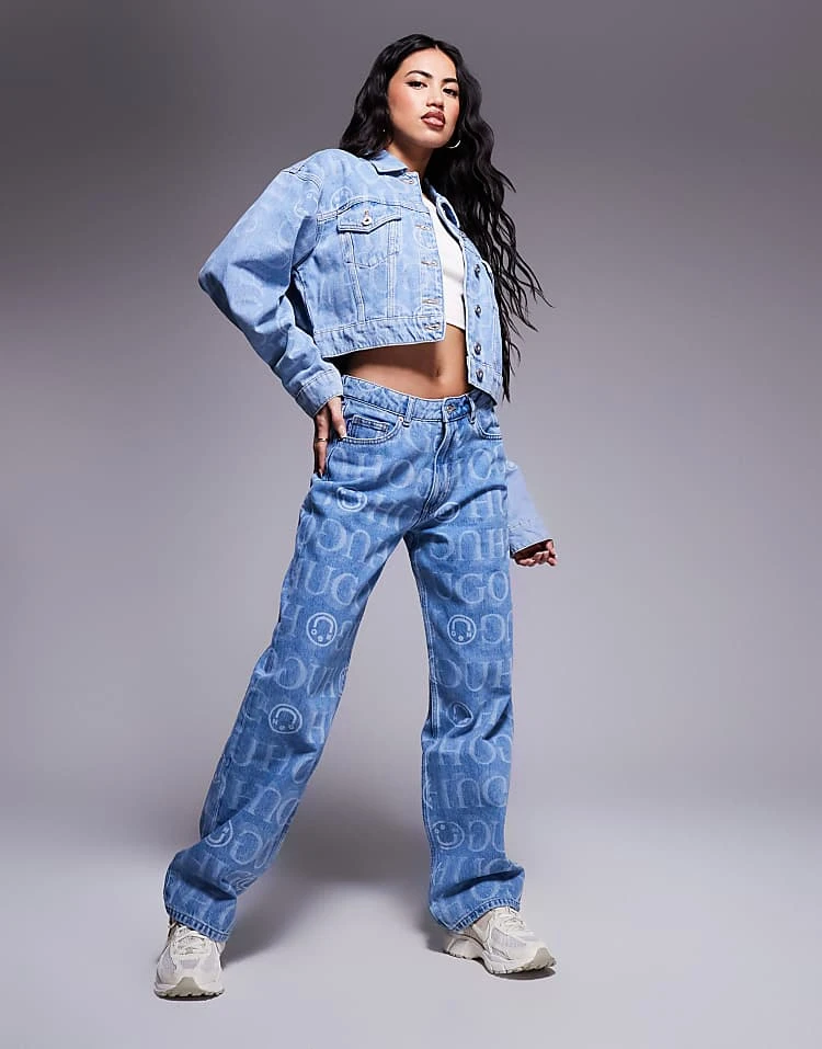 HUGO Blue Elyah Straight Leg Jeans In Mid Wash For Women Medium Blue