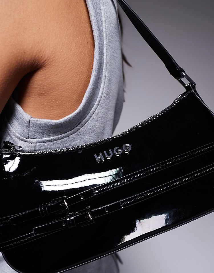 HUGO Red Delisabeta High Neck Mesh Long Sleeve Top In Blue With Floral Print For Women Blue Floral