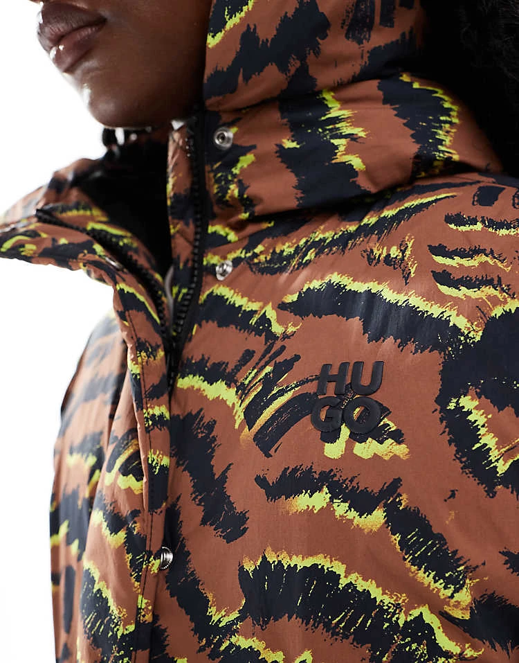 HUGO Red Delisabeta High Neck Mesh Long Sleeve Top In Blue With Floral Print For Women Blue Floral