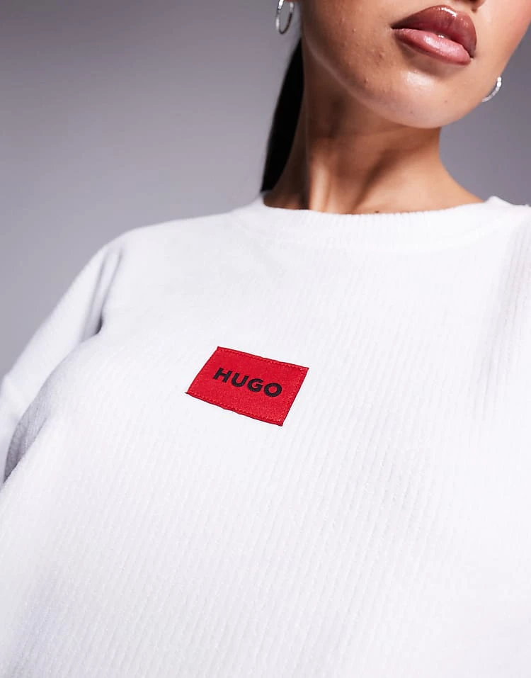 HUGO Red Delisabeta High Neck Mesh Long Sleeve Top In Blue With Floral Print For Women Blue Floral