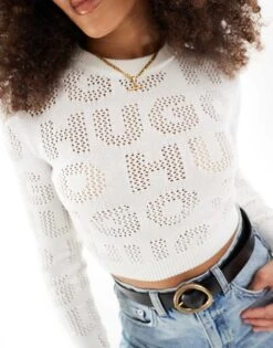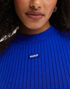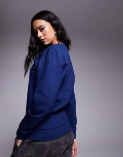 HUGO Red Easy Crewneck Sweatshirt In Navy With Logo Print And Diamante Detailing For Women Blue