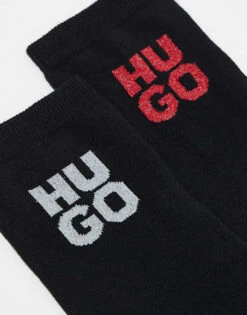 Hugo Red HUGO Bodywear 2 Pack Giftset Socks In Black With Glitter Logo For Women