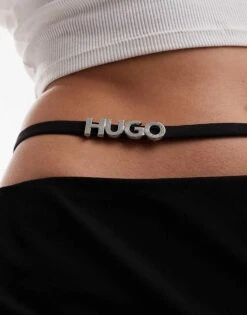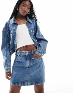 HUGO Red Gebisi Co-ord Denim Mini Skirt In Midwash Blue With All Over Logo Studding For Women